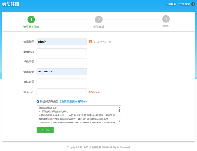 步骤四、若页面提示手机账户已存在,您可进行判断: